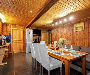 Сняв посуточно дорогой коттедж для свадьбы или вечеринки где-нибудь на Рублевке, вы будете переживать, чтобы ваши гости случайно не повредили импортную мебель или изысканную посуду. Ведь потом придется отвечать перед собственником. Конечно, относиться к чужому имуществу нужно бережно. Построив и оборудовав наши деревянные коттеджи специально для сдачи в аренду, мы продумали все для комфортного отдыха, при этом внутреннее убранство домов постарались сделать простым, надежным и доступным. Почти вся мебель сделана из массива дерева собственноручно нашими мастерами. Ее сложно сломать, но даже если это случайно произошло, мы починим без ущерба для вашего кошелька. Каждый дом укомплектован недорогой, но качественной и функциональной посудой по количеству гостей. Если же вы планируете свадьбу или другое торжество в коттедже мы можем сделать для вас сервировку стола банкетной посудой.