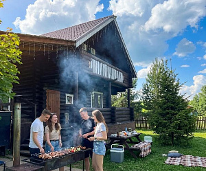 В чем разница? В первую очередь в цене. Отдых в Подмосковном отеле 3*, предлагающем размещение по системе все включено, обойдется минимум в 5000 рублей за сутки с одного человека. За эти деньги вы получите стандартный номер, 3-х разовое питание со «шведским» столом, возможность бесплатно пользоваться бассейном, спортивными площадками и другой инфраструктурой отеля. Коттедж на выходные обойдется конечно дороже. Но никто не снимает загородный дом для себя одного. Такая услуга востребована для отдыха большой компанией или семьей с детьми. Снять дом на сутки для компании 15 человек в эко-деревне «БабинДвор» можно за 30000. Таким образом, цена на одного человека в день составит 800-1500 рублей, что в 3-4 раза дешевле отдыха по системе «все включено». Конечно, арендовав коттедж на большую компанию, не стоит ожидать сервис 5-ти звездочного отеля. Здесь не выдают на каждого гостя по несколько полотенец, нет одноразовых зубных щеток, шампуней, халатов и тапочек, нет завтрака со шведским столом, ежедневной уборки коттеджей и других услуг, удорожающих отдых. Все это можно привезти с собой, приобрести за дополнительную плату в нашей лавке, а в ресторане заказать прекрасный завтрак из фермерских продуктов, обед, ужин, банкет или отдельные блюда на большую компанию. О развлечениях мы тоже позаботились. Но главное преимущество посуточной аренды коттеджей – отдых в кругу своей компании отдельно от посторонних. Вы можете арендовать дом с баней и с собственным небольшим бассейном, участком с беседкой и мангалом, которыми никто не будет пользоваться кроме вас.