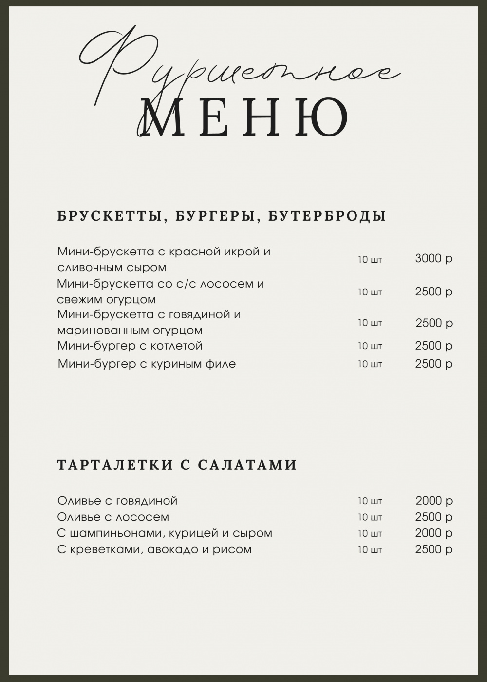 - Фуршеты с разнообразными закусками